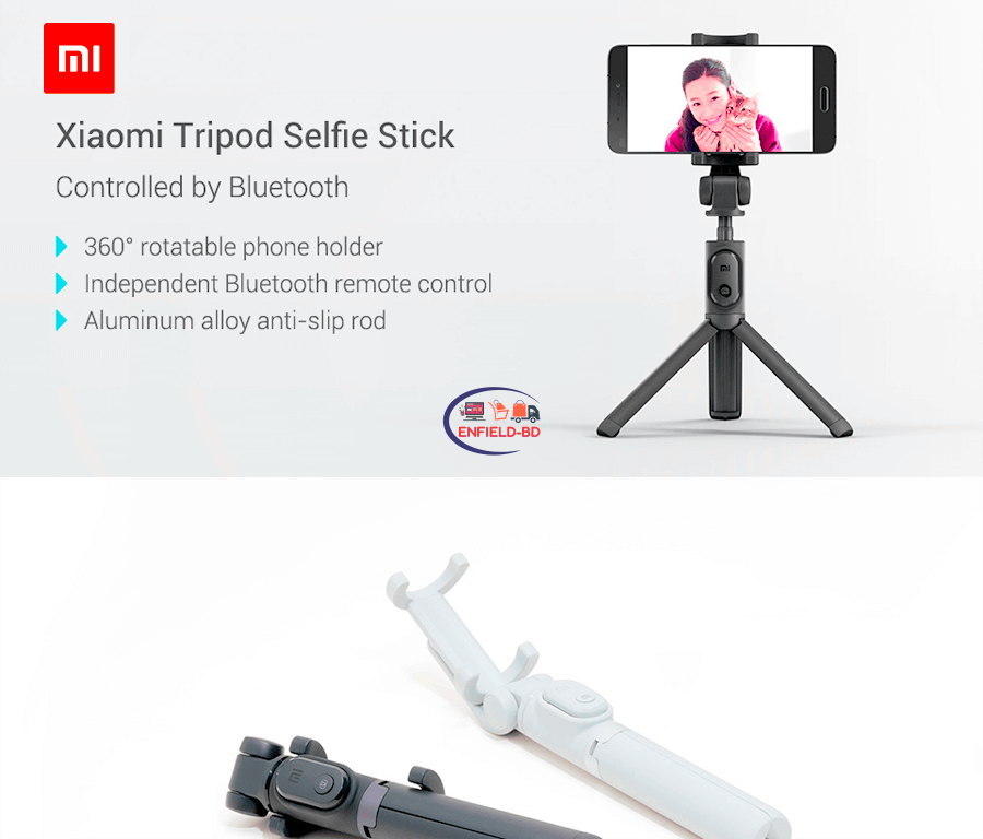 Xiaomi XMZPG01YM 2 in-1 Mini Lightweight Bluetooth Extendable Folding 360 Degree Portable Tripod Self Stick. Creative Bluetooth 3.0 selfie stick photography bracket combination. Wireless connection, no cable troubles. One-touch operation of the camera shutter, easy to use. Aluminum alloy extension rod, anti-oxidation, durable.360-degree rotation adjustment. Stable tripod stands for a video or movie. Built-in 60mAh rechargeable lithium-ion battery.