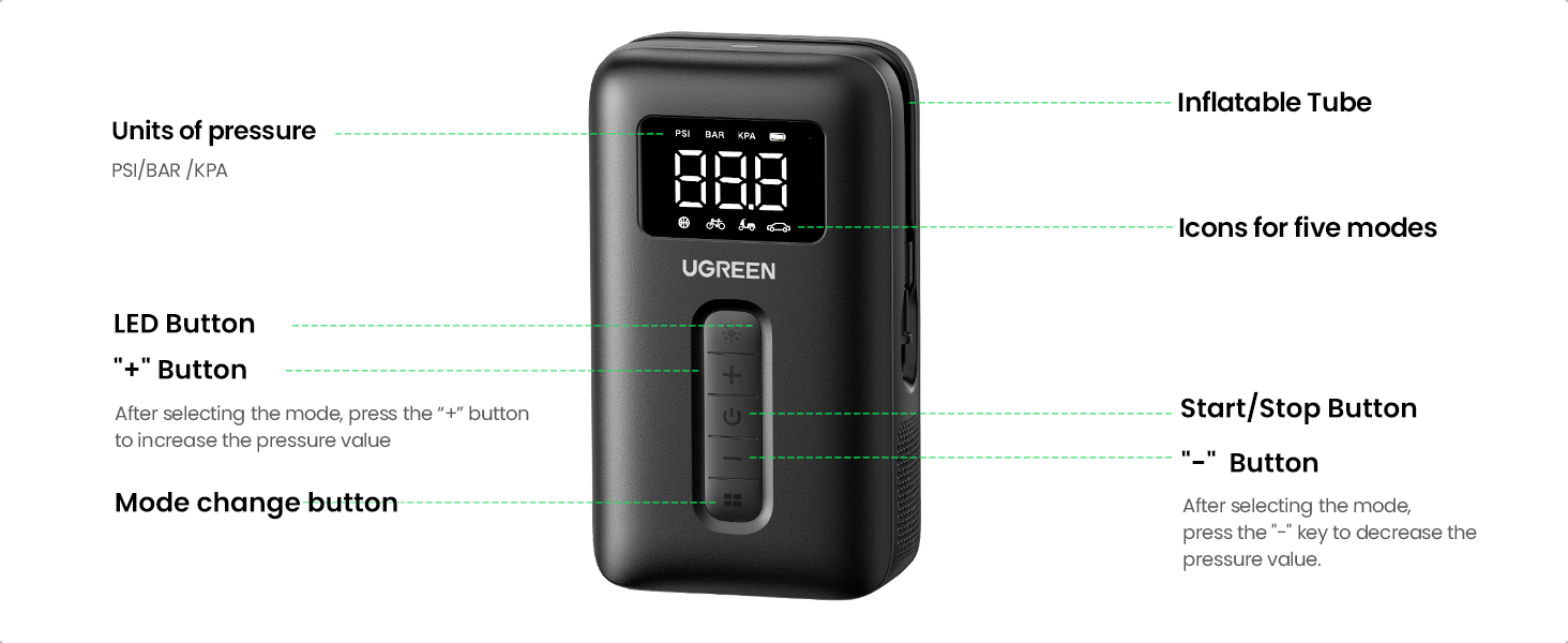 Ugreen CD259 (15951), Portable Air Compressor, Black