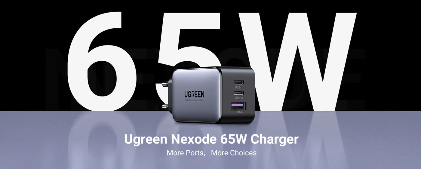 UGREEN Nexode 65W USB C GaN 3 Ports Wall Charger with Type-C to Type-C Cable (CD244)