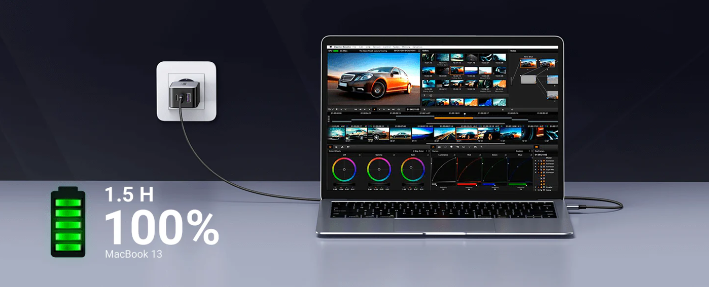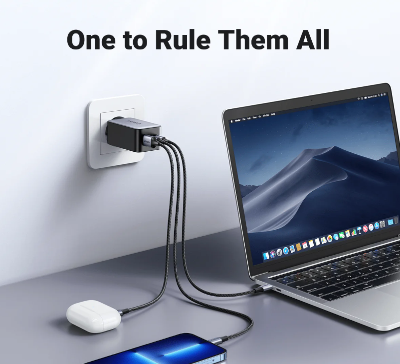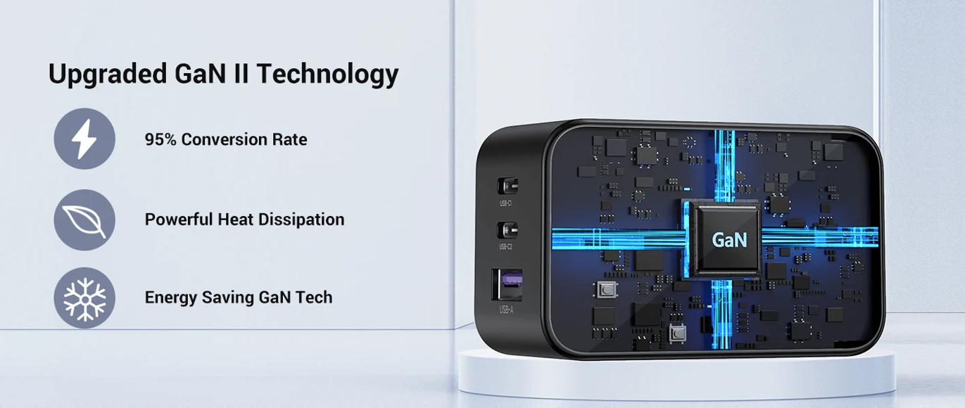 - Technology: GaN (Gallium Nitride) for efficient power conversion